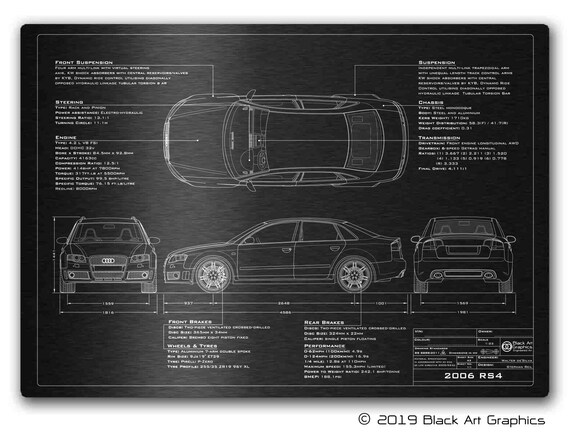Audi Rs4 B7 Personalised Engraved Aluminium Blueprint Etsy Ireland